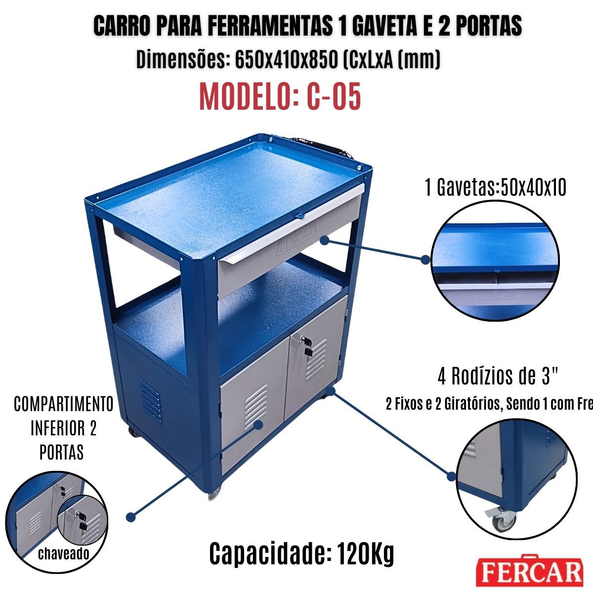 Home CARRO P/ OFICINA C/ 1 GAVETA C/2 PORTAS C-05 FERCAR