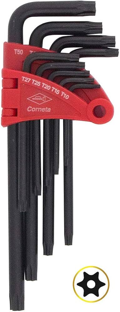 JOGO CH. TORX L T-10 > T-50 9 PC CURTA C/ GUIA CORNETA